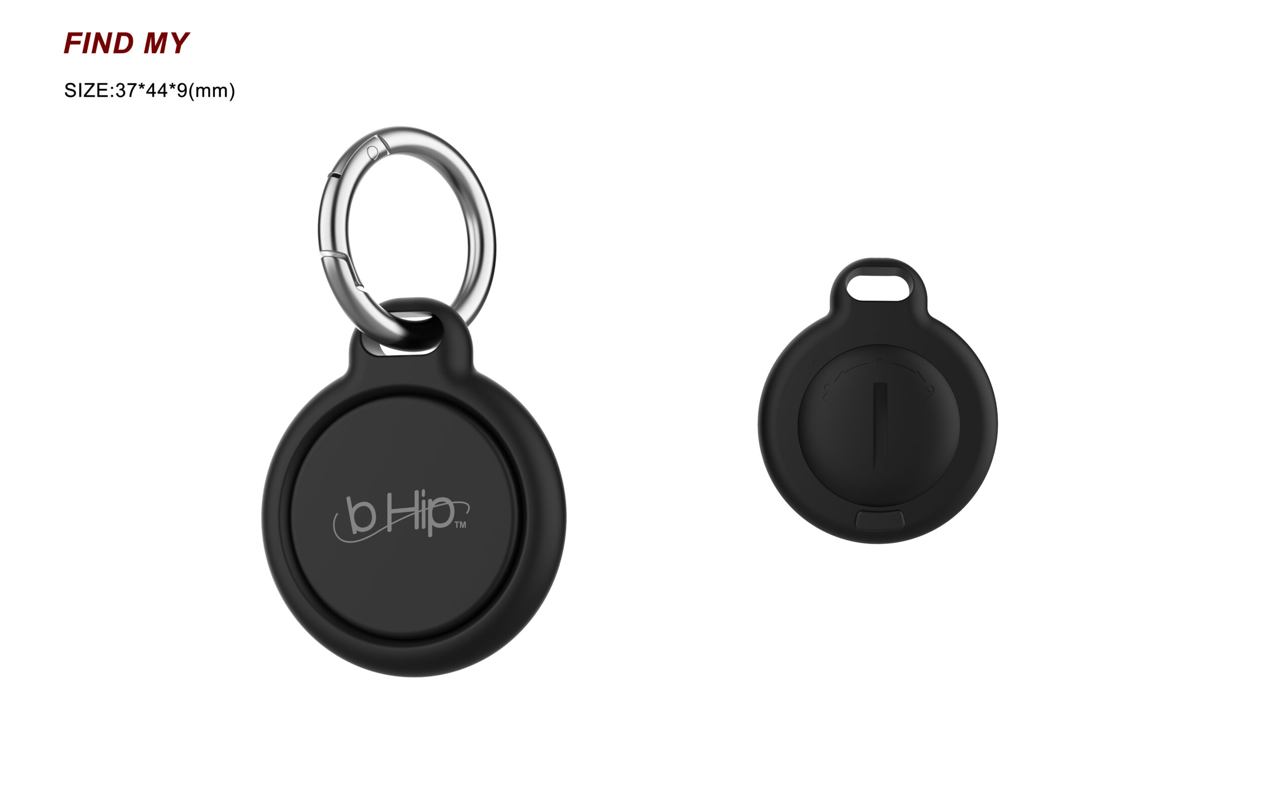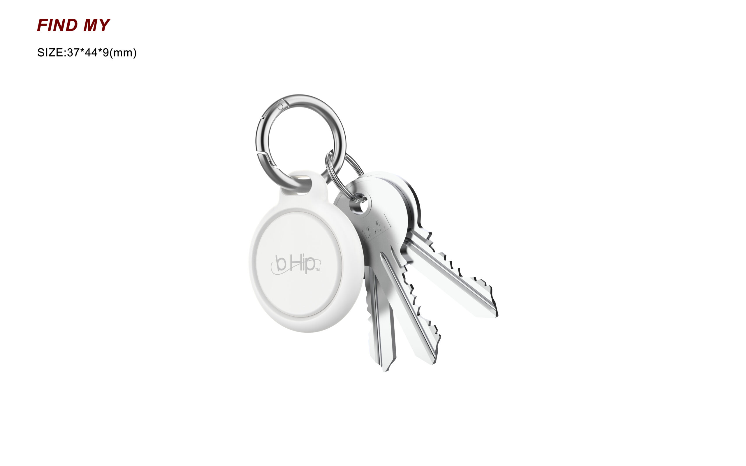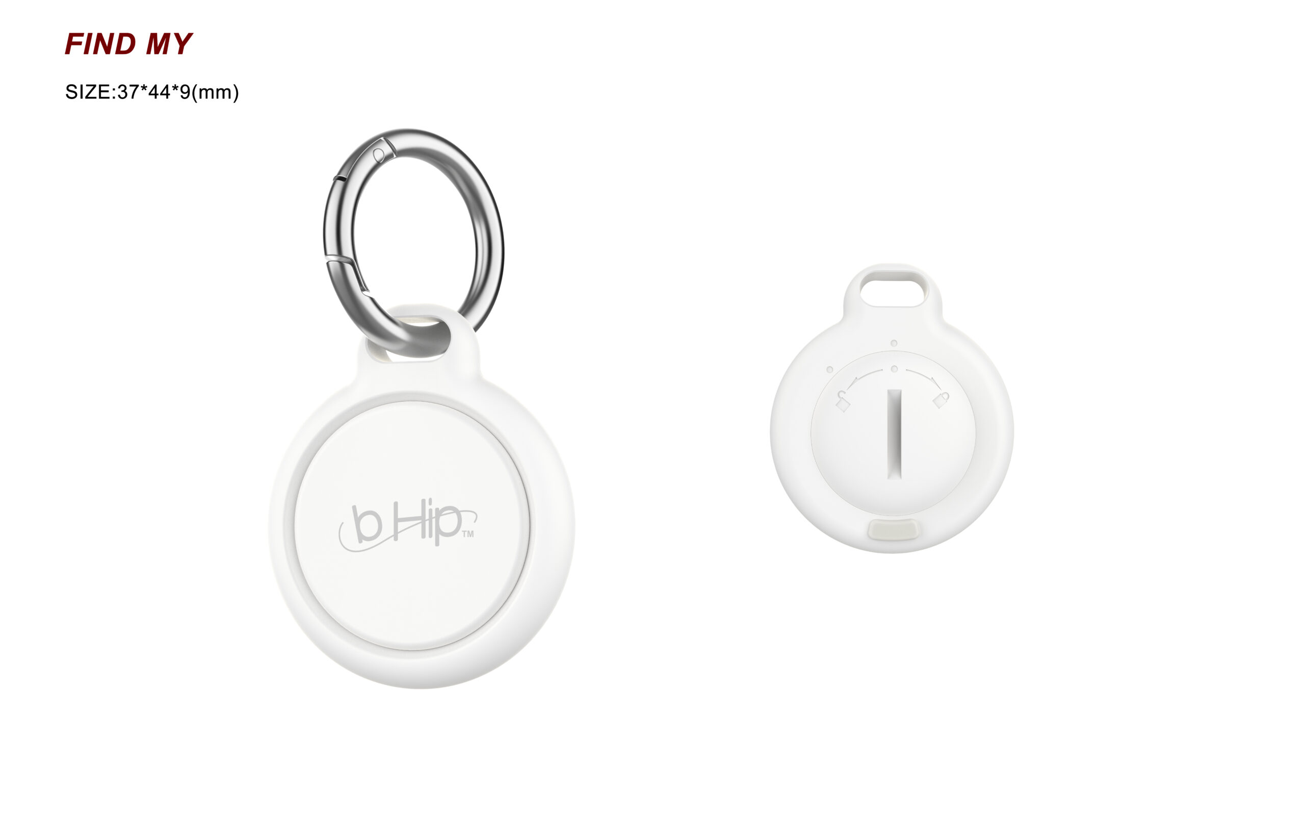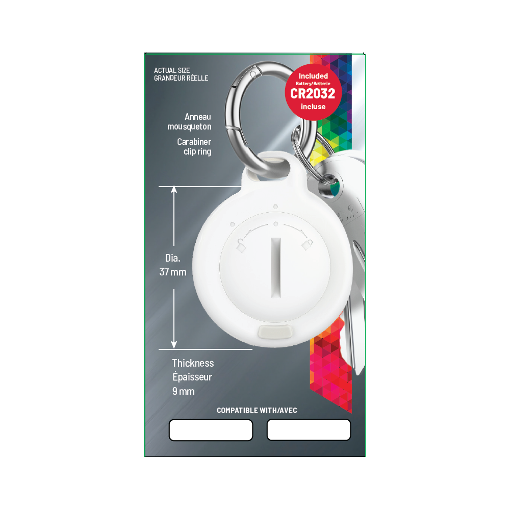 This product is designed to work with compatible Apple devices and the Find My app. While it may be certied under Apple’s MFi (Made for iPhone/iPad) program, it is not manufactured, sponsored, or endorsed by Apple Inc. Apple, iPhone, iPad, iPod, Mac, Lightning, and Find My are trademarks of Apple Inc., registered in the U.S. and other countries. The use of these trademarks is solely intended to indicate compatibility with Apple products. Carabiner clip ring Dia 37mm