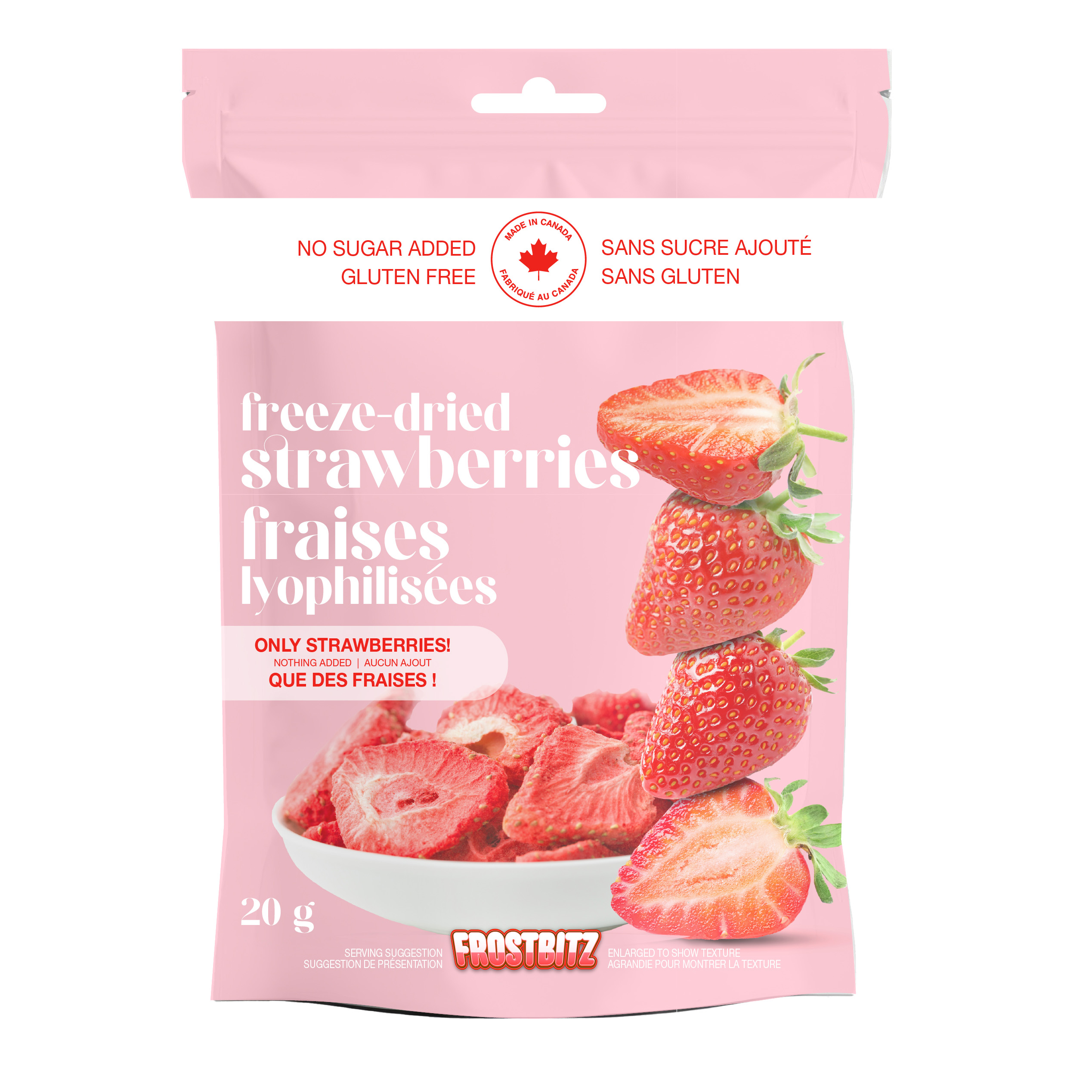 Remplis de saveur et riches en nutriments, nos fraises et bleuets lyophilisés sont la collation santé idéale! Savourez le bon goût sucré et naturel des vrais fruits — n’importe quand, n’importe où. Sans sucre ajouté, juste du bon!