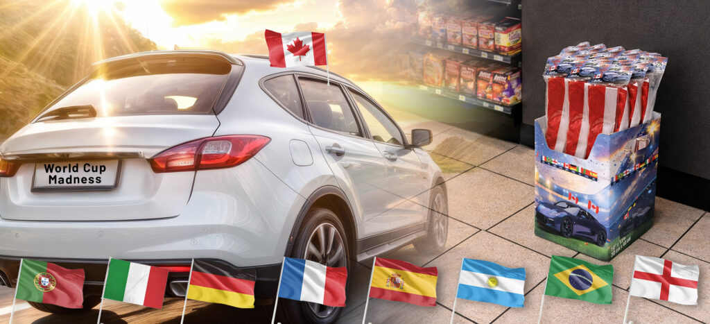 Affordable, high-visibility items tied to national pride and team spirit are easy add-ons, especially when placed near checkout or in compact promotional displays.